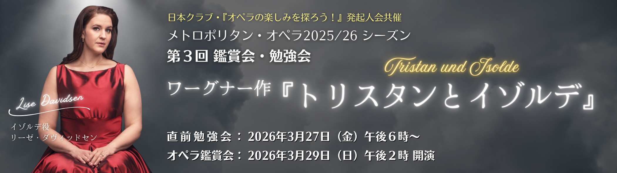メトロポリタン・オペラ2025/26 シーズン 第3回 鑑賞会・勉強会 ワーグナー作『トリスタンとイゾルデ Tristan und Isolde』