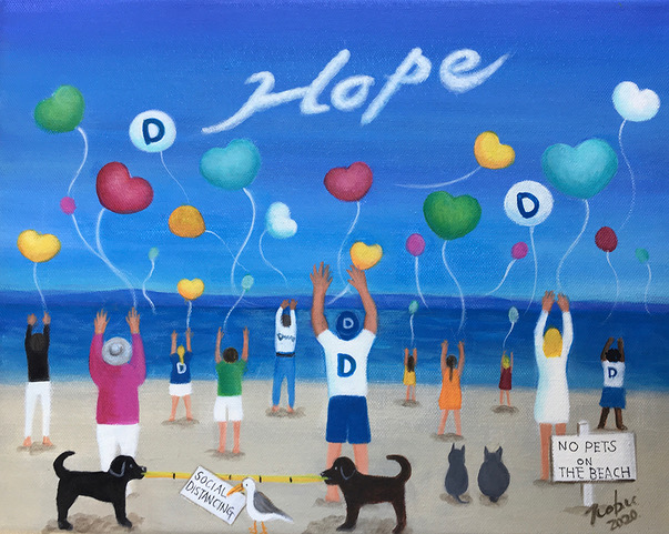 30点近くの絵の売り上げ全額寄付は、ちょっと思い切りましたが、絵を通じて少しでも世の中に貢献できる事、そして私の活動を支援して下さる方達がいてださる事を心からありがたいと感じています。そしてHope を見て微笑んで下さる方達がいてくださる事にアーティストとして励まされています。皆さん、頑張って乗り越えましょう。