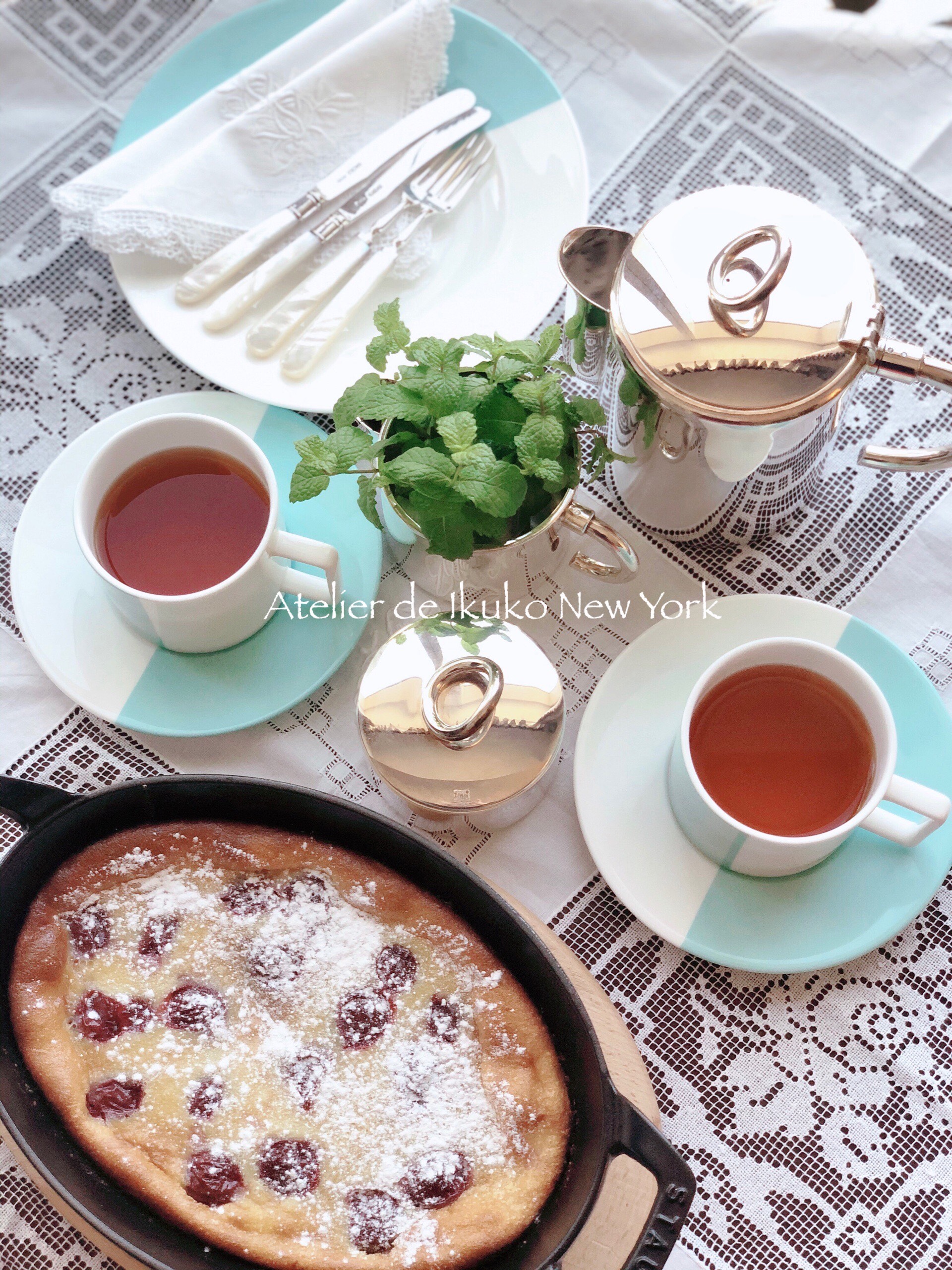6月に開催予定だった私のクラスは、昨年も好評だったTiffany Blue Box Cafeをテーマにした初夏のティーテーブルのクラスです。ティファニーはやっぱり女子の憧れ。ティファニーブルーに心躍る時間💕残念ながら今回は実際のテーブルをご覧頂けませんが、お家でお茶の時間を楽しんでいただけますように。写真はJulia Childのレシピからデザートにクラフティを作っています。薄力粉と砂糖を混ぜ合わせて、生クリームと牛乳、卵を合わせた液を少しずつ加えてクラフティ液をつくってフルーツを浮かべてオーブンへ♬プリンとケーキの中間くらいの食感のデザートが出来上がります😊簡単なのでぜひ作ってみてくださいね。