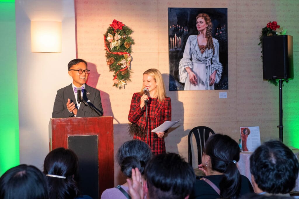 後半のエンターテインメント、司会はChristina Maxwellさんと前田事務所長、息の合った名コンビです。