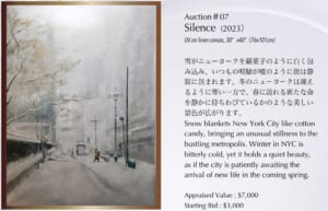 また、スペシャルイベントとして、ニューヨークで活躍するアーティスト、日本クラブWEBギャラリーの常設アーティストの一人でもあるKoh氏の絵画をパーティー会場に展示し、サイレントオークションを行いました。