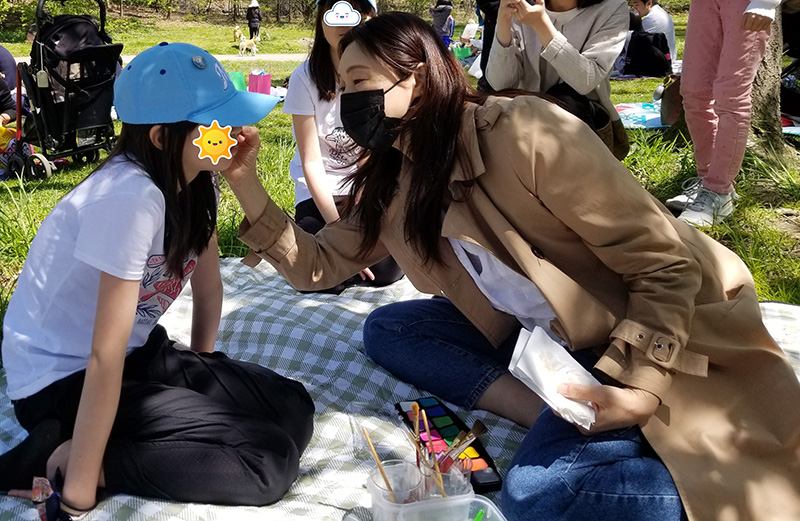 ピクニックエリアでは、アーティスト・Rie Nishimuraさんによるフェイスペインティングをお楽しみいただきました。色鮮やかなフェイスペインティングに子供たちは大喜びでした。