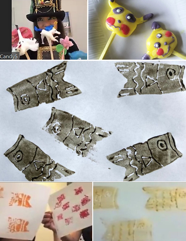 ワークショップ後は作った飴細工や版画などの作品を見せていただき、ZOOM画面がお子様たちのかわいい笑顔で溢れました。そして最後は、お楽しみのドアプライズで盛り上がり、イベントは終了しました。ご参加いただいた皆様、ありがとうございました!