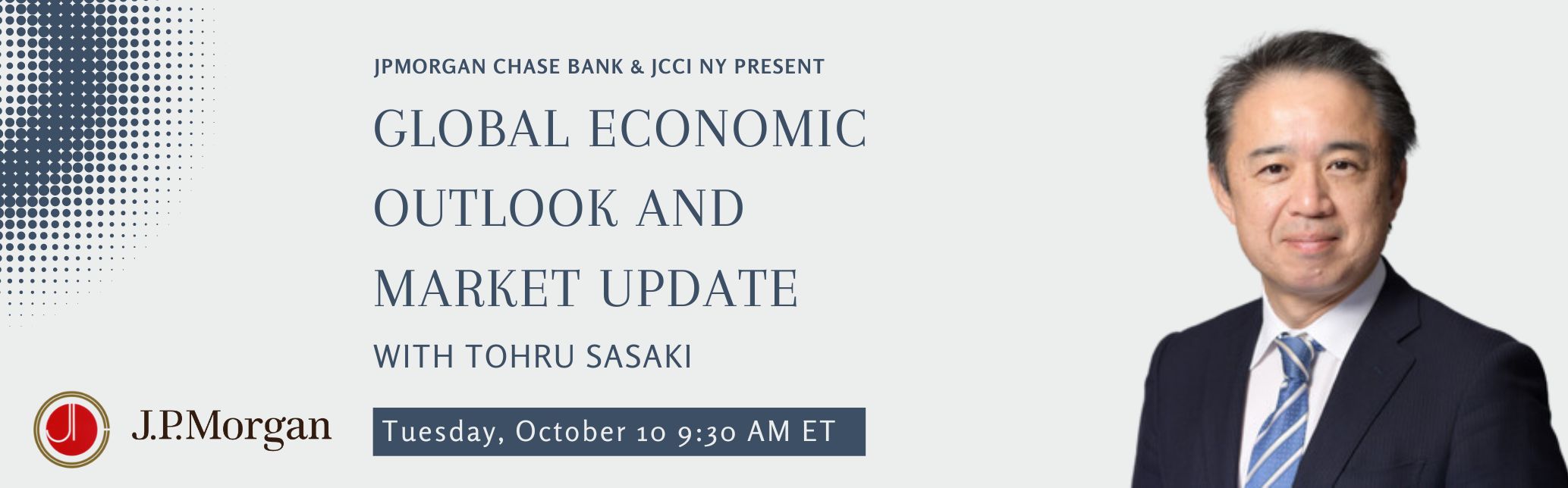 この度、JCCI・日本クラブは、JPMorgan Chase Bankの東京支店で市場調査本部長を務める佐々木氏をお招きし、日本での景気並びに物価対策を含めたグローバル経済や資本市場の見通しをテーマに、日本語でウェビナーを開催します。