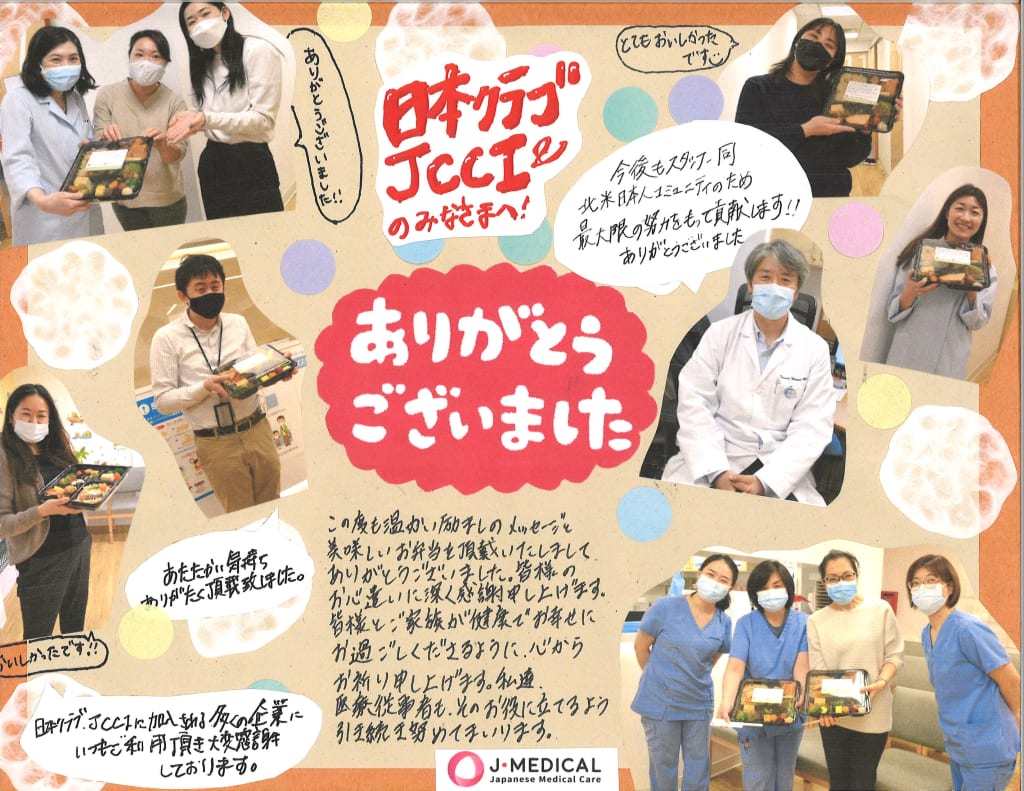 (お弁当は美味しく、包装も素晴らしかったです。このような機会を設けていただき、本当にありがとうございました。ハーレムホスピタルセンターを代表してお礼申し上げます。また次の機会を一同楽しみにしています。)