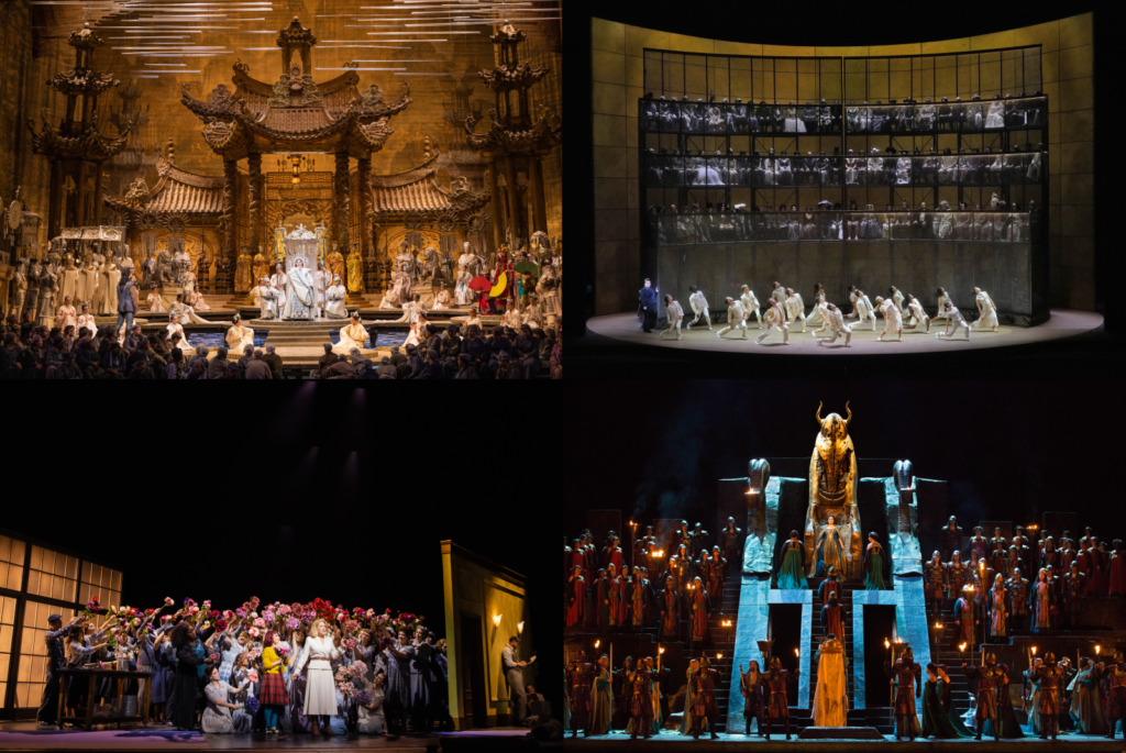 (Metropolitan Opera 2023-24 clockwise from top left, “Turandot,” “Orfeo ed Euridice,” “Nabucco,” “The Hours”)