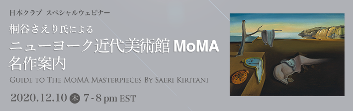 日本クラブでは、親しみ易い作品解説で人気の現代美術家・桐谷さえり氏に、ニューヨーク近代美術館MoMAに所蔵されている芸術作品をご案内頂くスペシャルウェビナーを開催いたします。