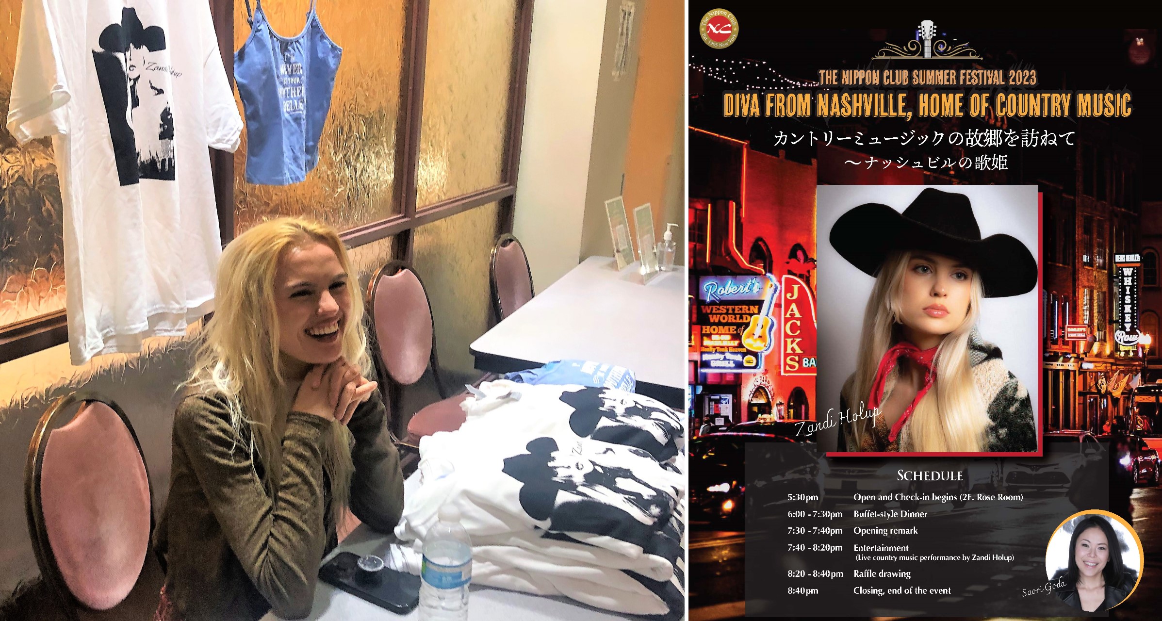 This year’s Summer Festival, an annual event held every summer, was held on Wednesday, July 26 at the Nippon Club, and titled “Diva from Nashville, Home of Country Music,” featured country singer Zandi Holup from Nashville, Tennessee, the home of country music, as a performer.