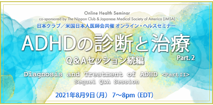 日本クラブ/米国日本人医師会共催 第4回オンライン・ヘルスセミナー ADHDの診断と治療<パート2> ~ Q&Aセッション続編