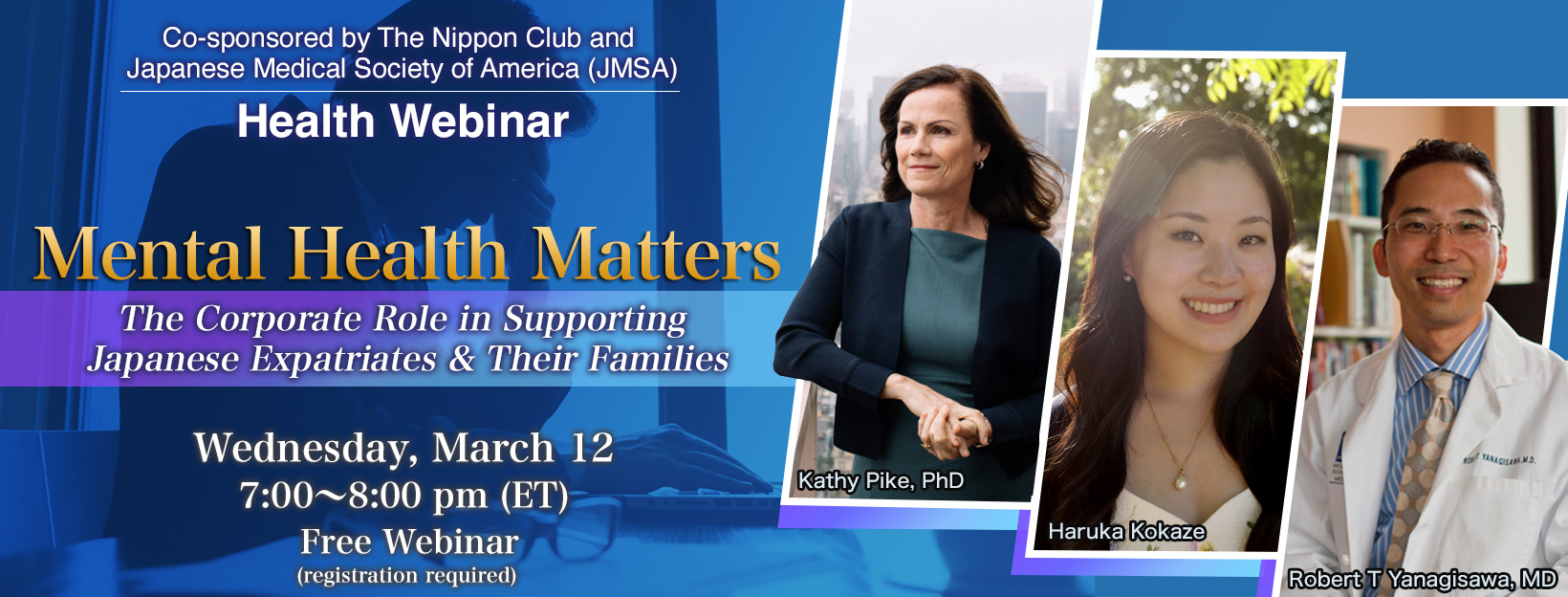 “The average professional will spend 90,000 hours at work throughout their life. Employers have a tremendous opportunity and responsibility to create mentally healthy workplaces by reducing exposure to psychosocial risks and hazards, promoting capacity-building and stigma-reducing efforts, and providing high-quality, easily accessible care. For Japanese corporations with U.S. subsidiaries, prioritizing mental health is especially critical due to the unique challenges faced by Japanese expatriates and their families. Relocating to a new country requires navigating cultural, social, and professional adjustments, which can contribute to heightened stress, isolation, and mental health challenges. Language barriers, differing workplace norms, and limited access to culturally competent mental health care further intensify these difficulties. This webinar seeks to equip corporate leaders with actionable, evidence-based strategies to proactively support Japanese expatriates and their families.