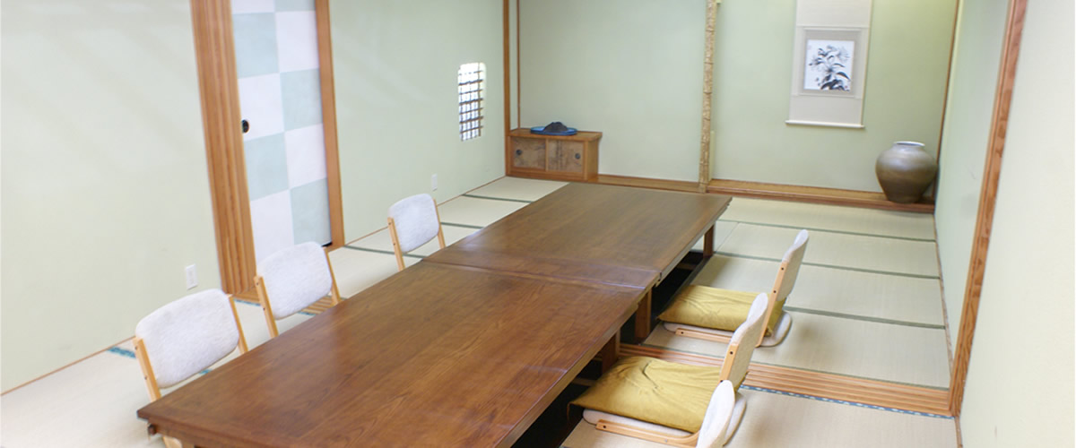 会食の際は、着物を着たスタッフがサービスいたします。日本の雰囲気を味わっていただくのに最適なお部屋です。お部屋では、IH調理器でのすき焼き、しゃぶしゃぶもお召し上がりいただけます。