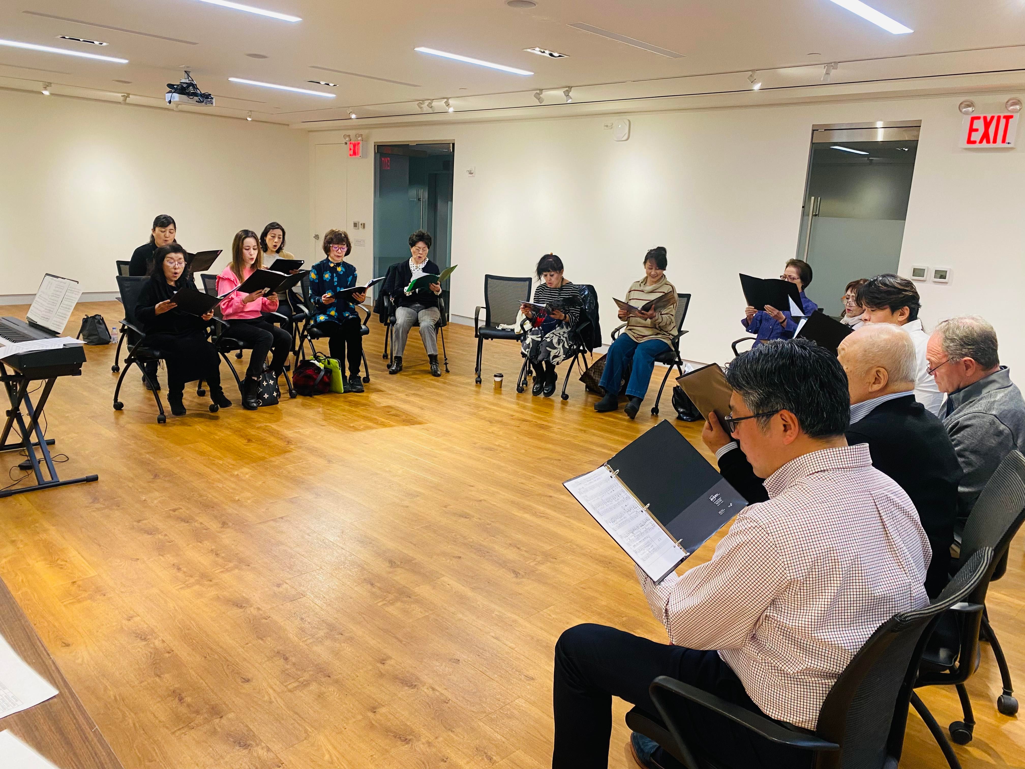 2023年1月31日――日本クラブ5階の教室にスターティングメンバーが集まり第1回目の練習をおこなったその日、混声コーラス部は誕生しました。その数17名。