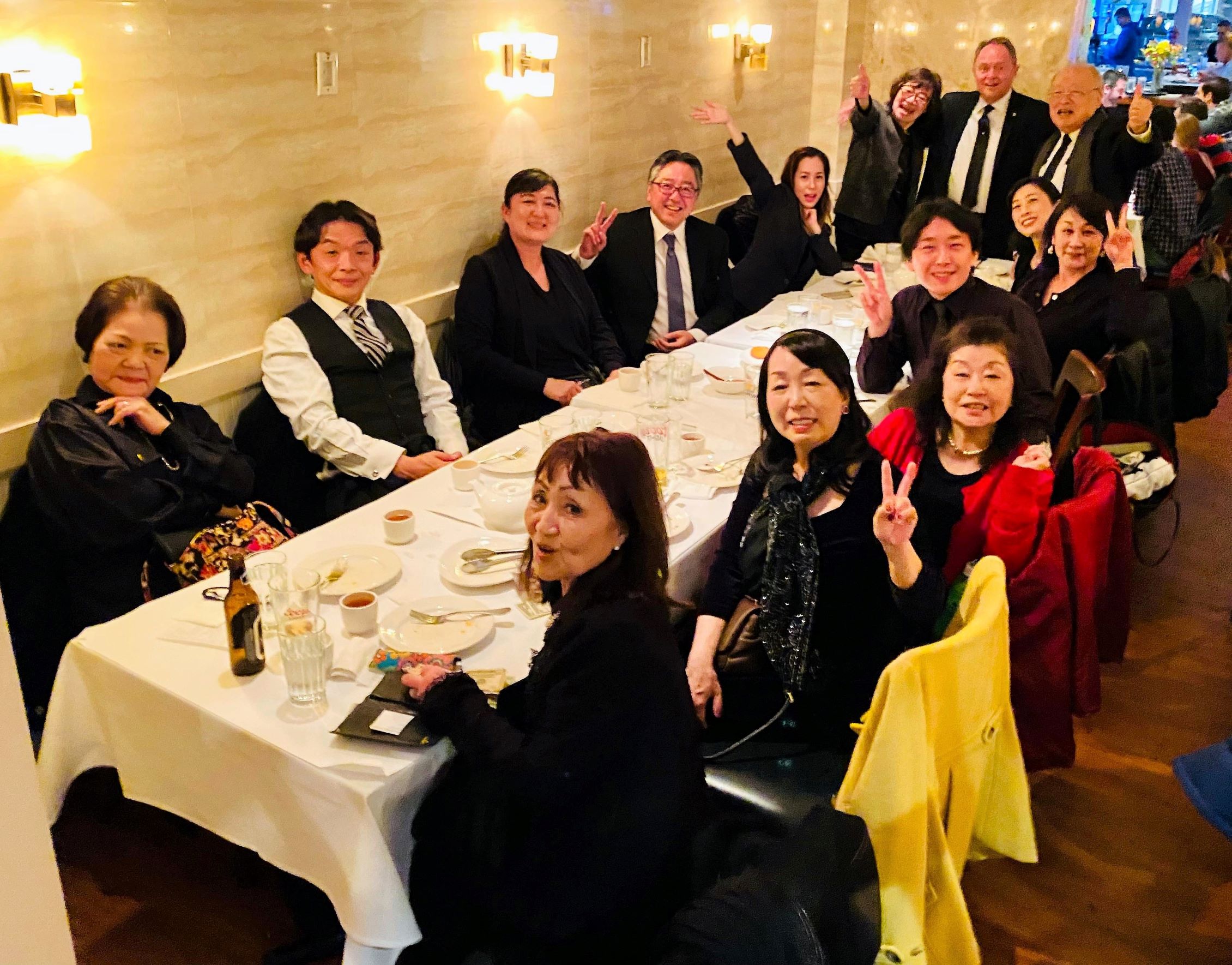 こうして迎えたレセプションが上手くいかないはずはありません。さすがに初舞台で皆さん緊張ぎみではありましたが、みごと歌いきり、万雷の拍手にくわえ「ブラボー!」も飛び交いました。皆さん、母国の為になることを立派に果たされたのです。