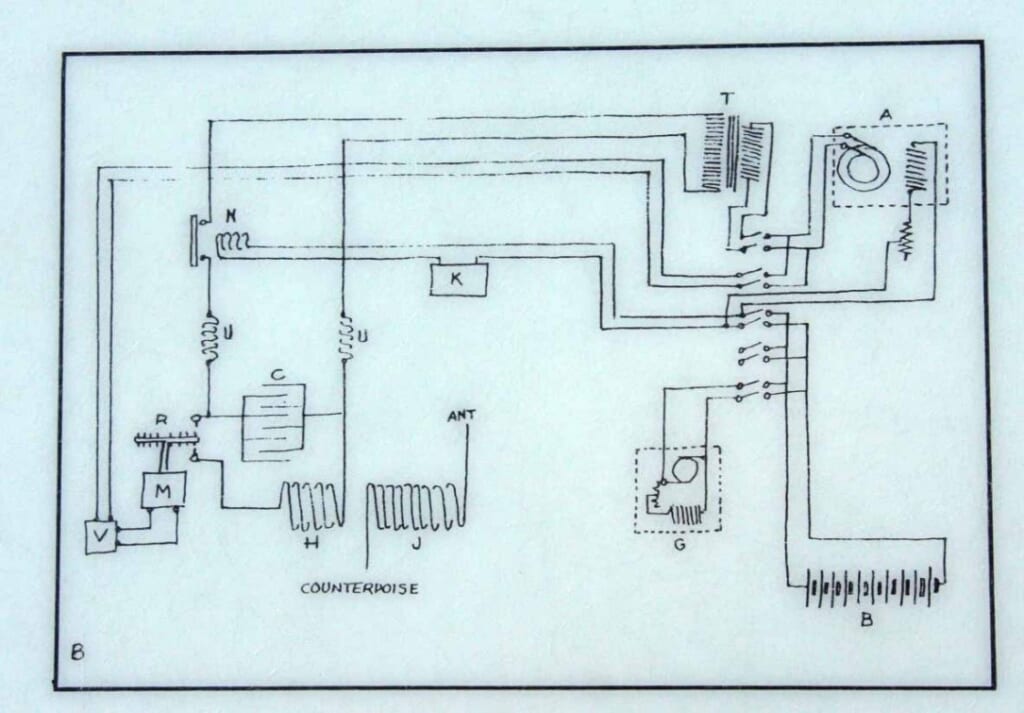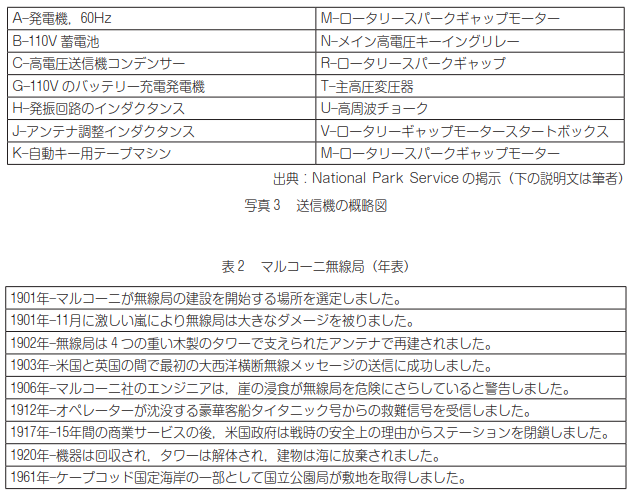 マルコーニ無線局の構成、送信機の概略図(写真3)。および年表(表2)を説明します。