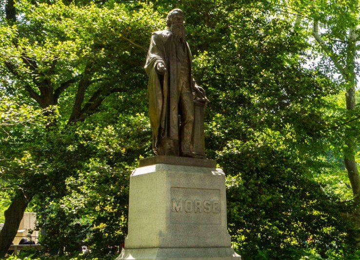 Inside Inventors’ Gate at 72nd Street and Fifth Avenue, stands a monument to the American inventor and artist Samuel F.B. Morse (1791–1872)