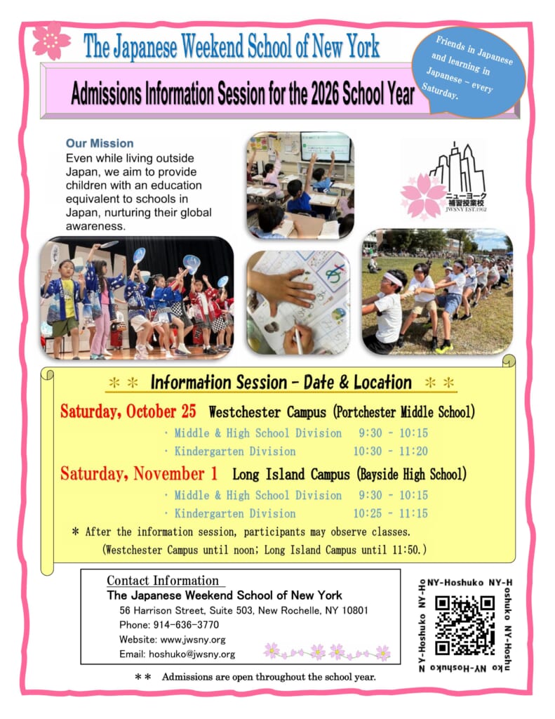 The Japanese Weekend School of New York Admissions information session for the 2026 School Year